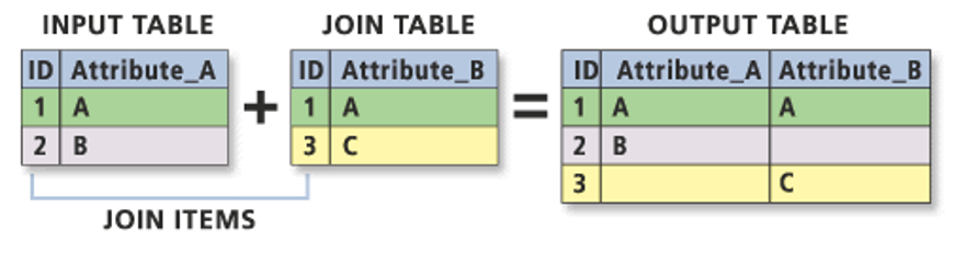 An atribute join allows you to link two datasets together based on a common attribute that facilitates the matching of rows. To perform an attribute join, you need a single unique identifying field for your records in both datasets. This can be a code, a name, or any other string of information. For the join to work, it is essential that the ID field is consistent across both datasets, meaning there should be no typos or spelling mistakes.